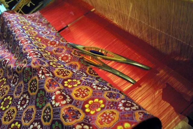 蜀錦其價如金主要體現(xiàn)在制作工藝上。要完成一件作品,從程序上說,主要需經(jīng)歷初稿設(shè)計、定稿、點意匠、挑花結(jié)本、裝機、織造等幾個重要過程。每一道程序又涉及到很多獨特的技藝。用蜀錦大花樓木質(zhì)機織造蜀錦,拽花工和織手須掌握多種技能。這些古代織造蜀錦的技能令人嘆為觀止。