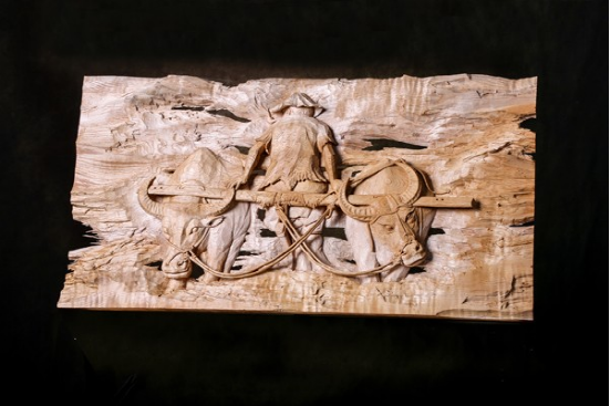 《門神》、《福滿門》這是劍川木雕在繼承傳統(tǒng)基礎(chǔ)上,對(duì)傳統(tǒng)的一種大膽嘗試性的發(fā)揚(yáng)創(chuàng)作。這些作品的特點(diǎn)是,既保留了嫻熟的傳統(tǒng)木雕技藝,只是通過(guò)巧妙的組合,在現(xiàn)成的古老大門上雕出“門神”或用舊門框作為木雕作品的邊框,從而產(chǎn)生一種新的意趣,這種創(chuàng)意很適合當(dāng)下都市的審美要求,也是劍川木雕未來(lái)發(fā)展中很值得提倡的新思路。木雕復(fù)制《張勝溫畫(huà)卷》