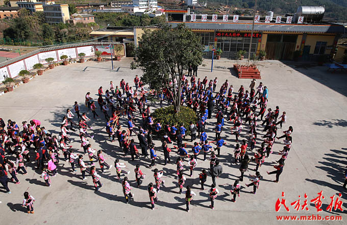 邊唱邊跳三弦舞的彝族學(xué)生們