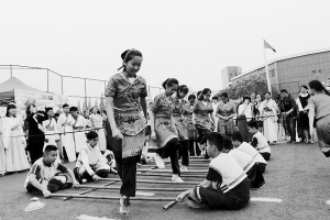文化節(jié)中,每位學(xué)生都拿到了一張“民族村游園圖”,并且領(lǐng)到了3張“體驗(yàn)券”。除了參加本班級(jí)的活動(dòng)之外,曹昊南還觀看了一部反映重陽(yáng)節(jié)來(lái)歷的短劇,參加了藏族的押加比賽。