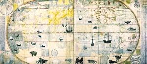 李之藻年輕時就對實學(xué)頗感興趣,曾自行繪制過明朝兩京十三省的地圖。見到利瑪竇用西法繪制的世界地圖后,李之藻敏感地意識到,這個地圖的繪制方法與中國傳統(tǒng)的“計里畫方”方法不同,是“取天文以準地度”,用經(jīng)緯度確定地理方位。對利瑪竇的學(xué)問一見而傾心的李之藻,每天都要到利瑪竇的公寓學(xué)習(xí)地理、天文知識,每次都要花上四五個小時。1602年,李之藻與利瑪竇結(jié)合中西繪圖技術(shù),合作繪制了一版世界地圖《坤輿萬國全圖》,這幅地圖改變了當(dāng)時通行的將歐洲居于地圖中央的西方繪圖格局,把子午線向西移動170度,從而使東亞的中國居于地圖的中央,并且全圖標上了詳細的漢字標識,這是中國最早的世界地圖。