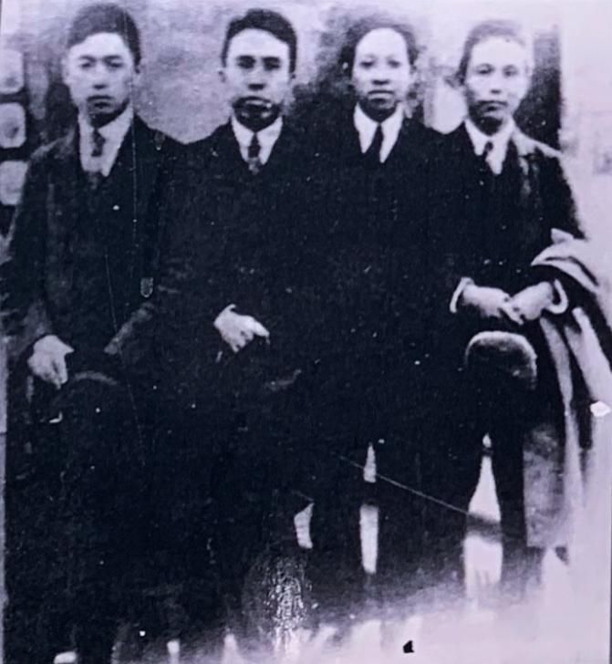 王若飛(右二)在法國勤工儉學(xué)期間和同學(xué)留影(許覬佳攝于貴陽市達(dá)德學(xué)校舊址)
