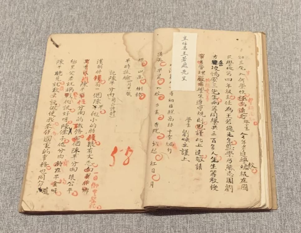 王若飛親筆批改的小學(xué)課本(許覬佳攝于貴州省博物館)