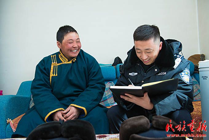 無(wú)論在哪個(gè)邊境派出所,敖日奇朗都跟牧民們以心交心,以誠(chéng)相待,成為好朋友。如今,敖日奇朗在諾門(mén)罕布日德邊防派出所工作五年了,也常有新寶力格邊防派出所轄區(qū)牧民打來(lái)電話,咨詢法律問(wèn)題,他每回都耐心地解答?!澳撩衽笥褌兊募冋尜|(zhì)樸平復(fù)了我剛到這里時(shí)躁動(dòng)的心。邊境派出所是邊民生命財(cái)產(chǎn)安全的保障,隨時(shí)為轄區(qū)群眾牽線搭橋辦事。邊防警察與牧民的良好互動(dòng),會(huì)在關(guān)鍵時(shí)刻發(fā)揮重要作用,這恰恰也是我們開(kāi)展走訪工作的意義所在。”敖日奇朗感慨道。