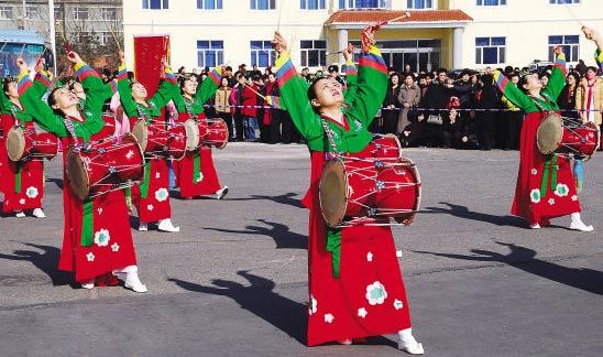 長(zhǎng)鼓舞是朝鮮族代表性的舞蹈之一,脫胎于傳統(tǒng)的“農(nóng)樂(lè)舞”。長(zhǎng)鼓分為長(zhǎng)鼓、舞蹈長(zhǎng)鼓、兒童長(zhǎng)鼓和幼兒長(zhǎng)鼓等幾種。形狀是兩頭粗、中間細(xì),左邊鼓筒直徑比右邊鼓筒直徑大1厘米,右邊鼓皮薄,左邊鼓皮厚。