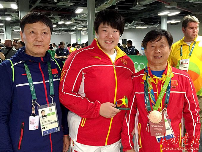 2016年,里約奧運會期間,烏日根桑格(左)與中國國家柔道隊隊員于頌(中)、國家柔道隊原主教練程志山合影留念。