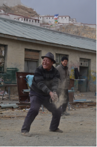 江孜這家工廠叫“鐵木家具廠”。廠長正在與員工一起沉浸于“打石頭”游戲帶來的快樂之中。廠長告訴記者:“如今,在江孜,以及西藏其他城市里,基本上看不到還有人玩這種游戲。只有鄉(xiāng)下在逢年過節(jié)的時候,人們才會玩這種游戲。而鐵木家具廠的工人之所以還玩‘打石頭’,是因?yàn)檫@項(xiàng)游戲是廠里保持了30多年的傳統(tǒng)。”