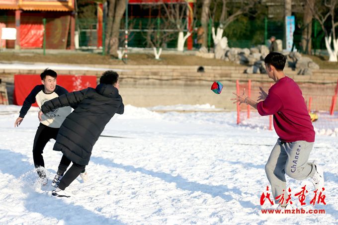 為了更好地將冰雪趣味健身賽事、冰雪健身體驗(yàn)活動(dòng)等送到全市各族群眾身邊,北京市民族傳統(tǒng)體育協(xié)會(huì)創(chuàng)造性地將綾球、高腳競速及板鞋競速等少數(shù)民族傳統(tǒng)體育項(xiàng)目與冬季冰雪相結(jié)合,整理、發(fā)展了雪地綾球、雪地高腳、雪地板鞋等項(xiàng)目,在現(xiàn)場進(jìn)行展示交流,吸引大批群眾熱情參與。