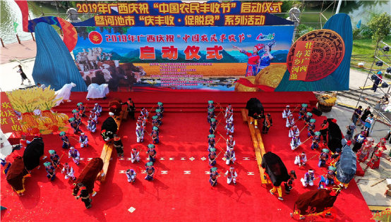 在廣西河池市,每逢“春節(jié)”“三月三”“豐收節(jié)”等重大節(jié)慶活動,當?shù)貕炎迦罕姸紩宄扇壕奂谖蓍芟?、廣場上、曬谷坪……歡快地一起“打魯列”。