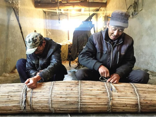 接著,父子幾人配合著,開始蹬簾子步驟。“搟簾子的步驟最關(guān)鍵?!倍藕C髡f,蹬簾子的時(shí)候,蹬的時(shí)間長了不行,短了也不行,要掌握好時(shí)間,才能達(dá)到最好的效果。“哪都需要精細(xì)化,稍不精細(xì)就會出現(xiàn)氈散了、爛了,做不成功就廢了?!闭f著,杜占財(cái)和杜占福在杜海明的帶領(lǐng)下,三人用雙腳,來來回回仔細(xì)地進(jìn)行著搟簾子。