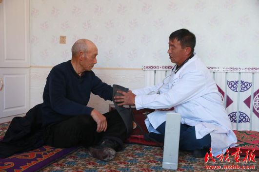 一只老式的皮藥箱、一匹馬、一個裝滿藥的馬褡子、一件綁在馬鞍后的皮大衣,見證了居馬泰·俄白克的牧區(qū)醫(yī)生生活,他那風塵仆仆的身影在包扎墩牧區(qū)已經(jīng)成為牧民們眼中最美的身影。