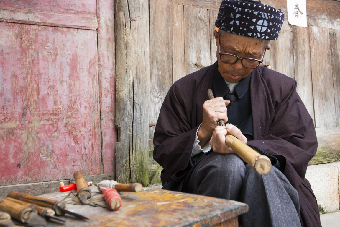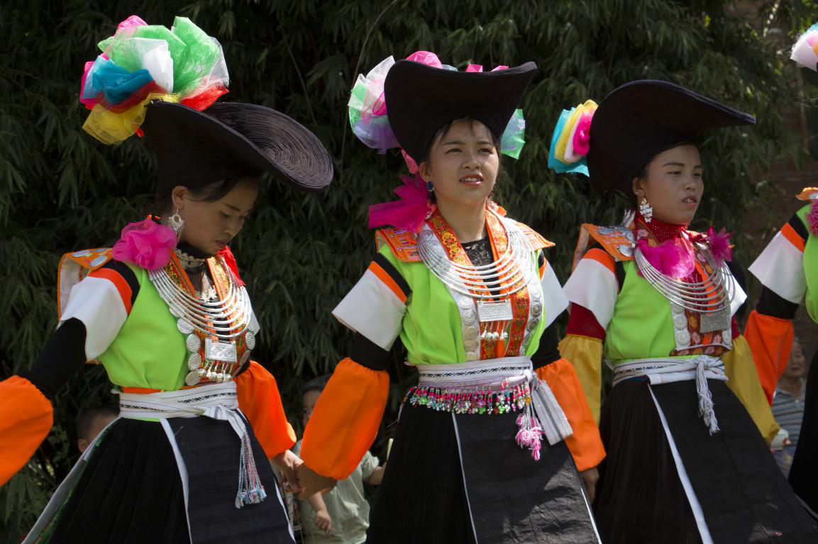 批林村除了傳統(tǒng)民居之外,自然還有屬于他們的傳統(tǒng)服飾。批林村的男子傳統(tǒng)服飾較為簡(jiǎn)單,主要以青藍(lán)色斜襟長(zhǎng)衫為主,頭飾用六米長(zhǎng)的布條圍成的帽子。在批林村鬼師的穿戴中,與眾不同的是,鬼師還會(huì)外披一件亮黃色大衣,胸前帶有銀圈。