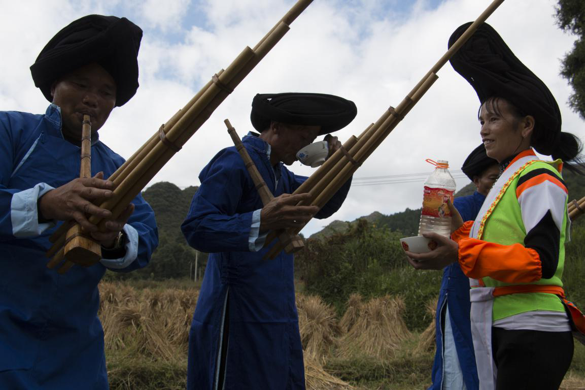 批林村蘆笙曲不限定地點(diǎn),只要蘆笙響起,田間地頭,都可以起跳。蘆笙曲曲調(diào)深沉而又悠揚(yáng),配著藍(lán)天白云,稻草風(fēng)香,整體舞蹈與天地相合,令人沉浸其中。