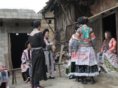 貴州貴陽苗族婚禮上新郎新娘裝...